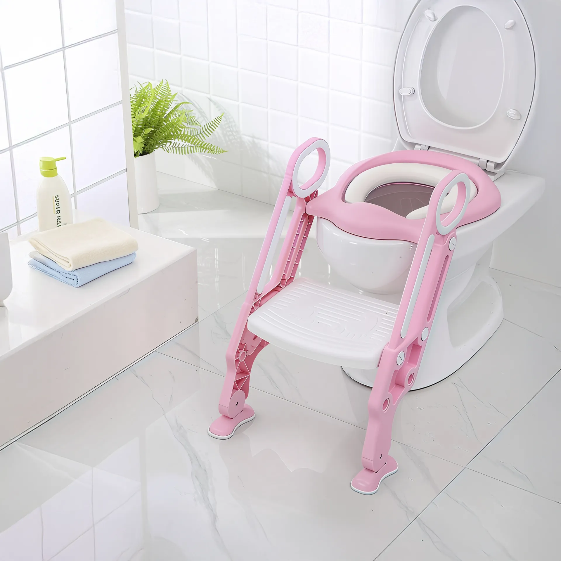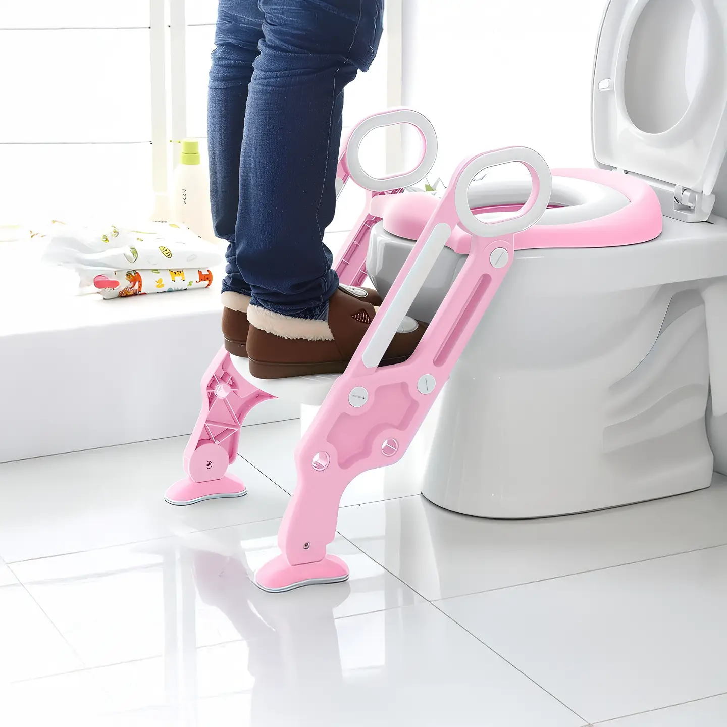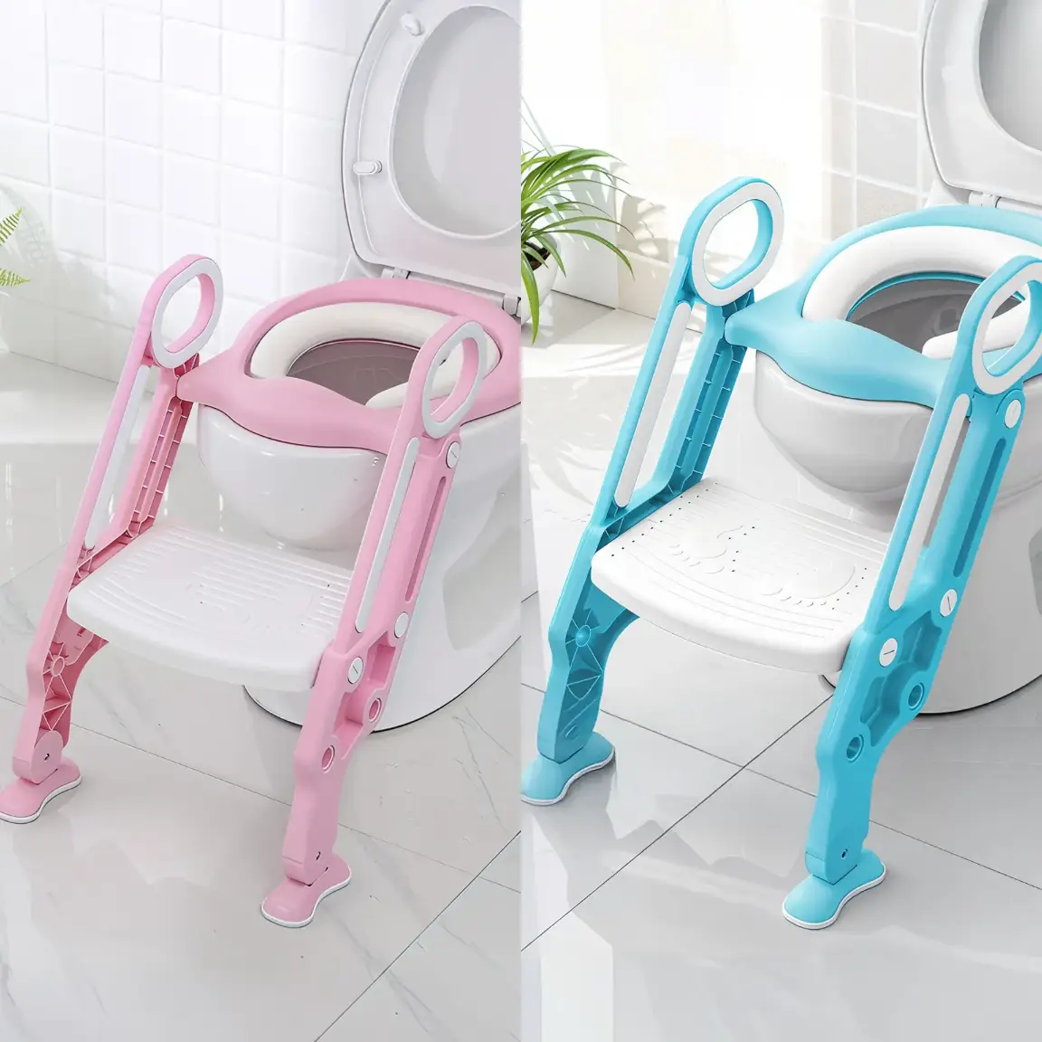 Facilita la transición de tu hijo al uso del inodoro con este asiento infantil ergonómico, seguro y fácil de limpiar. Disponible en rosa y azul, se adapta a la mayoría de inodoros estándar.