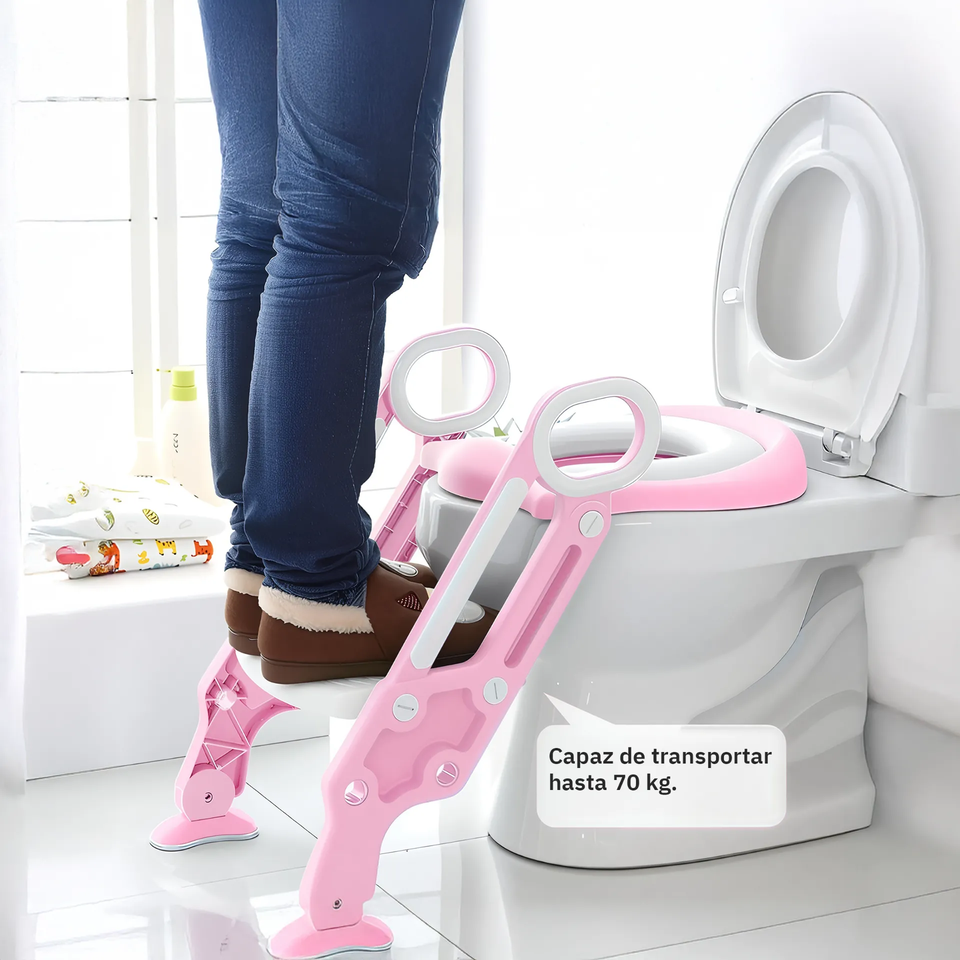 Al principio, mi hijo dudaba en usar el baño, pero desde que tenemos este asiento se siente más seguro. ¡Gracias!